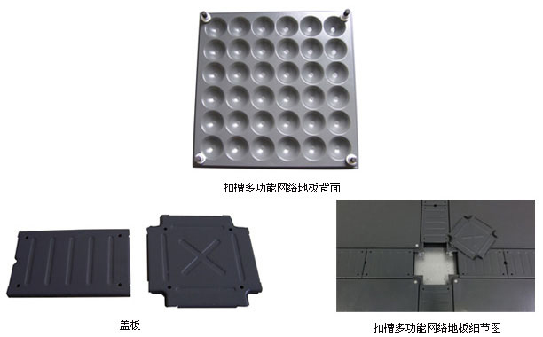 功能簡介:超低多功能線槽網絡架空活動地板為扣槽式結構,為環保節能型產品,綠色環境認證。